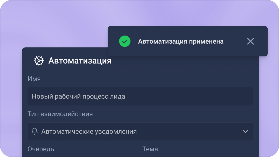 Настраивайте процессы под специфику вашего бизнеса: автоматические уведомления, распределение задач, контроль сроков и интеграция с внешними сервисами.